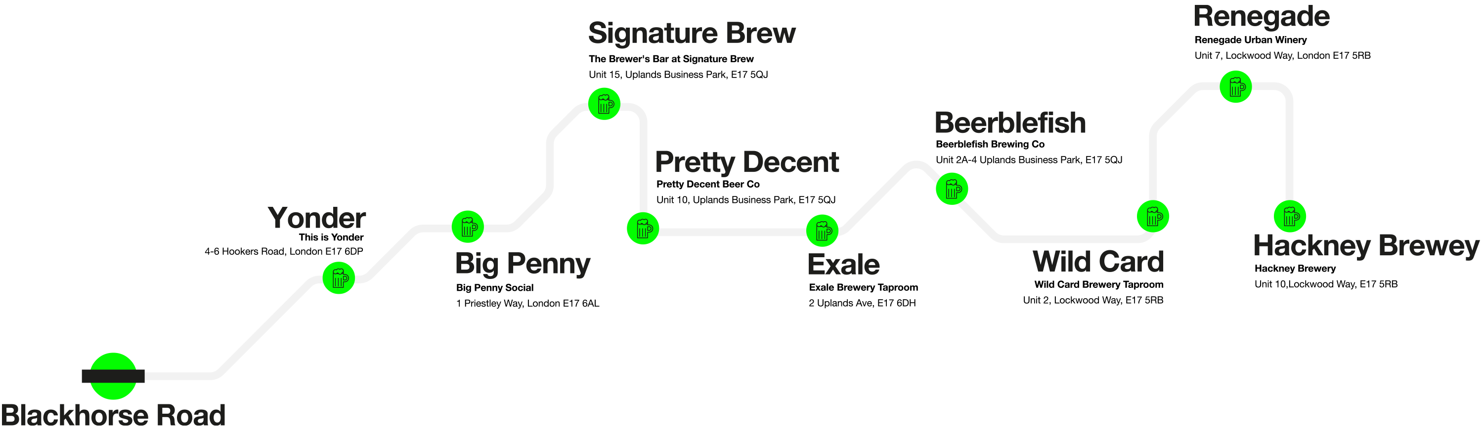 A walking route featuring some of East London’s most exciting craft breweries, and upland’s resident breweries are a significant feature on the route.